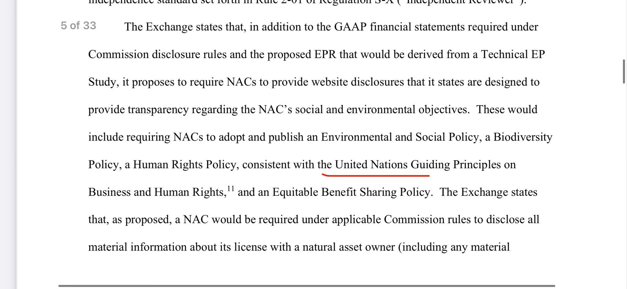 What is worse than the SEC deciding to listen to corruptible wealth funds at the NYSE is for them to listen to the United Nations (UN). Using UN language, they want “a commitment to recognize and respect people’s rights in accordance with customary, national, and international human rights laws, in particular those of indigenous peoples.”4 Here is another sentence we’ll unpack soon.
