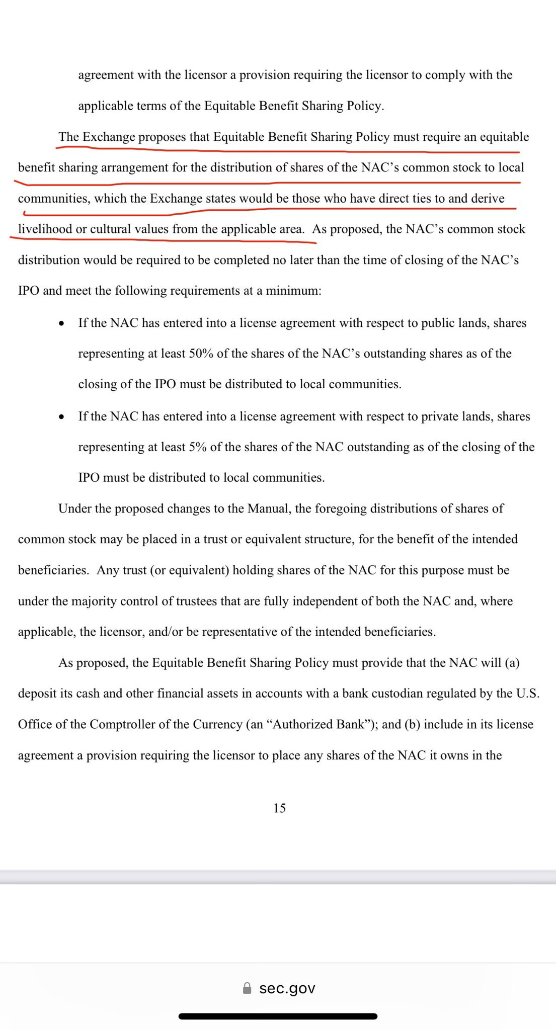 Following along this vein, the Securities and Exchanges Commission has placed up for public comment a new policy and regulation (bypassing our elected representatives) to create a new class of businesses as proposed by the New York Stock Exchange (NYSE) and Intrinsic Exchange Group (IEG).2 From the SEC website, they state, “The Exchange proposes that Equitable Benefit Sharing Policy must require an equitable benefit sharing arrangement for the distribution of shares of the NAC's common stock to local communities, which the Exchange states would be those who have direct ties to and derive livelihood or cultural values from the applicable area.”3 This sentence says nothing at all about their true intentions, but we’ll dive into that in a second.